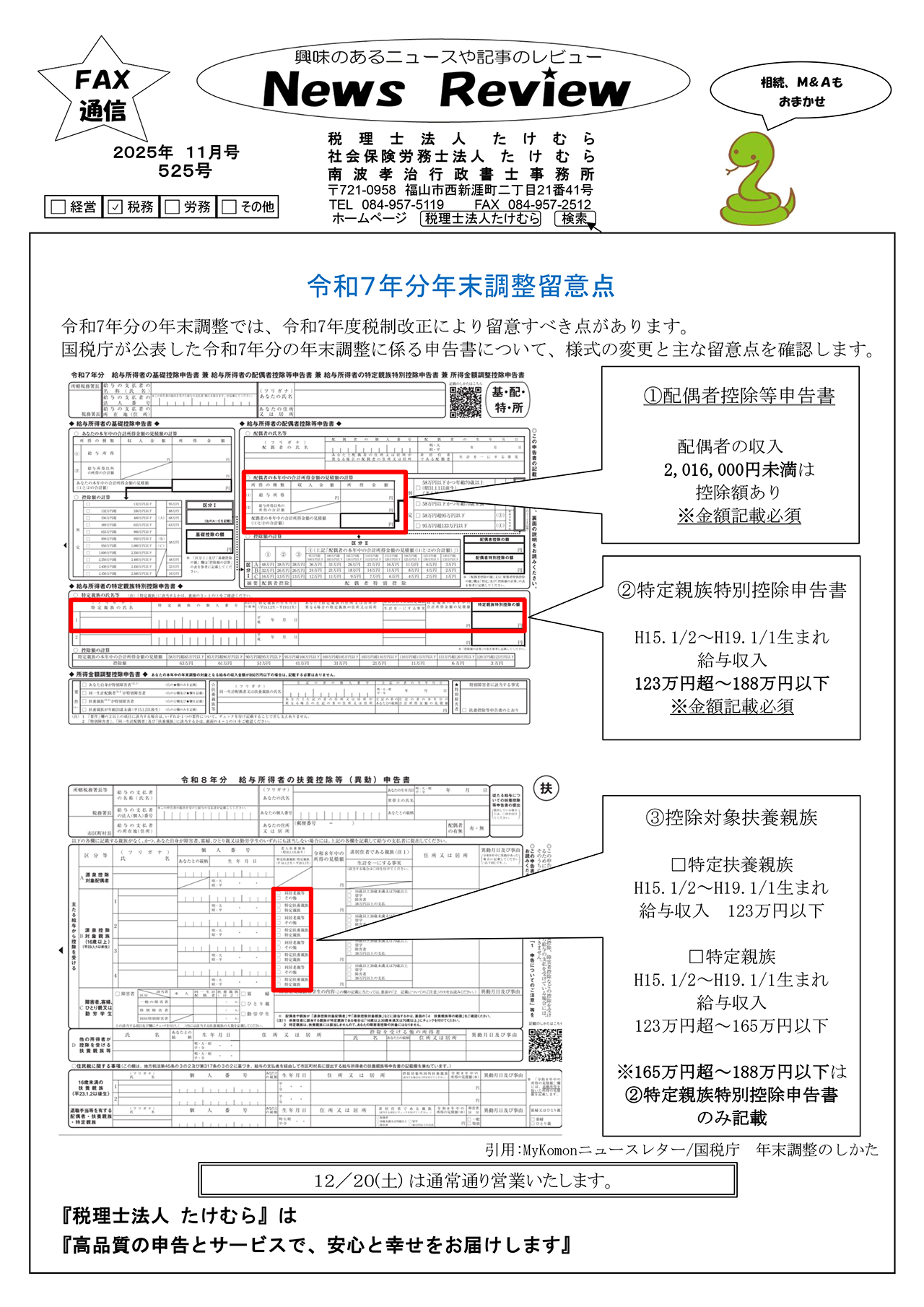 令和7年分の年末調整では、令和7年度税制改正により留意すべき点があります。